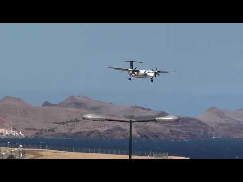 Aterragem DASH da SATA Air Açores no Aeroporto da Madeira com muito vento.